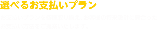 • 選べるお支払いプラン お支払いプランを各種取り揃え、お客様の将来設計に見合ったお支払い方法をご提案いたします。